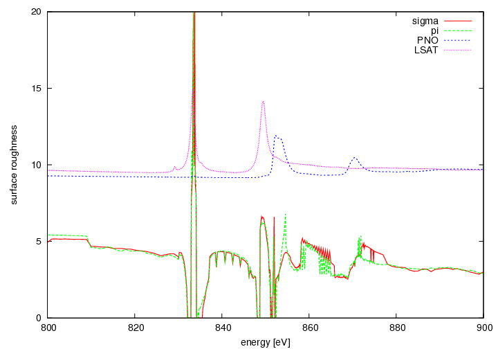- Because of the disturbance of the Ni L3 edge one has to fit a lorentzian to the La M4 edge and take this values for the higher energies (850-860 eV).